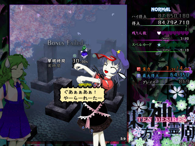 × [PR]上記の広告は3ヶ月以上新規記事投稿のないブログに表示されています。新しい記事を書く事で広告が消えます。 戻ってまいりました。どうもろんさんです ここしばらく回線がどうとかでネットが出来ませんでしたが なんとか戻ってこられました(*´ω`*)=3 とまぁ、そんなことがありましたが 十日間の間になにもやってなかったということは別になく 東方紅美鈴Ⅱのα版その2の調整をしておりました。 それ以外にもFURUBOKKO IN GENSOKYOの裏ボスを倒したり フォーリンラブを完クリしてみたり・・・あれー?(ぉ きっと近いうちにα版その2を出すと思われます。 きっと今週中あたりに。なので遊んでやってくださいな きっと web拍手お返事 >音沙汰が無くてちょっと心配になってきましたが、 >だ、大丈夫ですよね? 大丈夫でした。ご心配をお掛けしてすみませんorz これからちょっとずつ空白の十日間を埋めていこうと思ってます 主にネットの(ぉ PR やっとこまともなスクショが出せました。 現在、第十話分のテキストを書き上げたところでございます。 聖輦船はこれから遠くへお出かけするところ。 ぎゃーてーこと響子さんはお留守番です。 まぁまだ中身はなんも作ってないんだけどなっ!(ぇ というわけでまたちょこちょこ作っていくのでした。 web拍手お返事 >最近、東方キャラのメガマリ妄想する事が多くなってますが、 >早苗さんはどうしても9のトルネードマンのイメージがw。 >あ、Youtube辺りで検索すればどんな奴なのか分かります >(因みに、9のボス戦BGMは好きですw 9いい感じに面白そうですよね。トルネードマンもちょっとカッコいいw 最初トードマンと見間違えて腰振る早苗さんを想像したのは内緒(ぉ 十話後編のテキストを書き書きしております。 今回のシナリオは、きっと万人向けにはならない・・・・・・っ!!(ぇ 元々かもしれない(ぇー さとりさんとおくうとオリキャラ動物の関係を書くのが難しい感じです。 第二話の終わりごろにおくうに連れられて地霊殿にやってきたアレです。 この動物がキューとしか鳴かず空腹を訴える以上の自己主張を一切しないのが困りもの。 第十一話以降はコイツを手がかりに異変の原因を探さなきゃいけないので 美鈴たちも下手に手を出せず困ってしまいます。 ※第十話の概要 おくう「ヘンな動物拾ったよ!立派に育てて地霊殿に役立てよう!」 おりん「そうしよう!」 さとり「立派な考えね!さとりちゃん感激!!」 動物「腹減ったんだけどご飯まだ?あ、私悪夢しか食べないから(動物語)」 さとり「そんなの集めるの大変だし、私の悪夢をあげるわ」 おくう「なんかソイツ危ないから捨てよう」 さとり「ダメ!育てると決めたんだから育てるの!!」 おりん「おろおろ」 パチェ「その考え・・・人格が悪魔に支配されている!!」 おくう「まじで」 さとり「まじで」 動物「腹減ったんだけどご飯まだッスかね?(動物語)」 おりん「おろおろ」 わけがわからないよ web拍手お返事 >これが3ボスですか。とりあえずチーズバーガーとコーラをお願いしm(ry お札がバーガー屋さんのアレに見えるんですね分かります(ぇ >神霊廟体験版で久々に東方をやってみたら、 >相変わらずボムを使えない自分がそこにいた… >RPGであみだ綱渡りといえばDQ3のガルナの塔ですね 今回はほぼ食らいボムが使えない仕様なので早め早めのボムが大事ですねw ガルナの塔といえばさとりの書とメタルスライムの群生地! 経験値おいしいねもぐもぐ(ぇ ・・・・・・ってあれ、アミダがあるのは山彦の笛のある塔の方じゃ(ry >忘れてた!紅美鈴2楽しみにしてますよ!(・ω・)つ[1000ぅにぅにー] (´・ω・`)やったー!うぅにぅにーだー!! (´・ω・`)もぐもぐ (*´ω`*)うめぇ! 紅美鈴2はもうすぐ半分くらいでございます。 その頃になったらきっとα版その2を出すよ! >GW楽しんでますか?ニコニコで色々と漁っていたら >良い曲を発見したのでどうぞw ⇒sm6337942 >何かコレ、個人的に東方にマッチしそうな気がするのは気のせいでしょうか?w かもですねー。和風な感じはします 個人的にはここまで厳粛なイメージは無いですけども >どうもあちこちで新作の妖夢の悪い話が流れてるみたいですが、 >そんなにひどいんですか?(汗 >う~む・・・私は取りあえず全員のEDを見る派なのですが、 >それでも止めた方が身の為って程とか?(滝汗 強いけど乗りこなすには難しいじゃじゃ馬娘といった感じ。 本気の本気でほんのわずかでも上を目指したい訳でなければ 素直に霊夢と早苗さんだけ使いましょうとみたいなレベルです。 確かに攻撃力は高いけれど、是非とも使いたい! と思うほど強くないのがちょっと残念。 グッと近づいてバシッと斬ってゲージを三分の一くらい削れるなら欲しい(ぇ とーどーしゃー説ととーどーしゅー説があるけど 結局どっちが正しいのだろう(ぇ というわけで東方神霊廟をプレイしてみました。 ノーマル早苗さんのリプレイ 今回のシステムはかなり積極的かつ攻撃的で 張り付き速射な感じはいつもの東方とは違った感じですね。