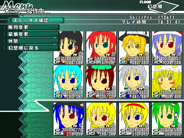 × [PR]上記の広告は3ヶ月以上新規記事投稿のないブログに表示されています。新しい記事を書く事で広告が消えます。 お前らいいから神主のサイトに飛べ!!(ぇ 東方の本家サークルである上海アリス幻樂団より、 東方Project第12.8弾「妖精大戦争 ~ 東方三月精」が発表されました。 比良坂氏によるかわい~いチルノが目印です。 弾幕を凍らせて進むゲームですって! どんなゲームになるんだろう。すごく楽しみ(*´ω`)=3 あ、海逢玉は現在ラスボス戦前まで作っています。 あとはラストバトルとエンディングだけ~ web拍手お返事 >夢冒険かぁ…ってまだ該当するRPGあるんだけど >そろそろネタがマニアックになりすぎてくるからやめとこうw >楽しみにしてますね!!ε-(゚∀゚*) わんぱくダック夢冒険!(違 夢の中を冒険するRPGといえば、自分はアランドラを思い出します。 でもその前に海逢玉を完成させたいなぁ。 >もぐてん第5話で慧音が友人リストに追加されないのですが。 Oh...こちらのミスです。すみません 慧音先生は友達と呼んでいいか最後まで迷ったので テキストだけ追加されたという記述が残ってしまったようです。 でももしかしたら追加するかも。逆に消してしまうかも >ふおおぉぉー ろんさんの東方の迷宮の顔グラ欲しいのぜ 正気か!(こら ゲームの進行に合わせて少しずつ追加していってるので かなりの数の抜けがあります。特に立ち絵。 それでもいいならこちらでどうぞ(ぉ >幽修剣のDLページ、タイトルは幽修剣ダウンロードページって >書いてあったんですがページ冒頭の見出しが >”東方優永夜ダウンロードページ”になってたんですが仕様でしょうか? >何かわかりづらくてごめんなさいorz ご報告ありがとうございますー。私のミスですorz 特に致命的なものでも無いので時期を見つつ直します。 PR タイトルに意味はありません(ぇー というわけで、現在はラストダンジョンを作っております。 あと本編はラスボス前哨戦とラスボスのみ。 内容が内容なのでネタバレできないのがいやん 制作の合間に東方の迷宮やってます。 いや、迷宮の合間に制作やってるのか?(ぇ ver3からいろんな機能が追加されたと聞いて スペシャルディスクを買ってきてしまいました。 新機能のひとつにキャラ絵差し替え機能もあるらしいので 画像クリックで拡大 やっちゃった(ぇ これの為に新たに顔グラを描き直したキャラもいるくらいです。 現在、13Fを攻略中・・・・・・ 前プレイの知識を使って無双中です。 こういうのもやってはいるけれど 需要てきにびみょん。 web拍手お返事 >合同RPGをDLしプレイしようと起動開始したところ、 >いきなりエンディングが流れ出しました……まだ何もしてないぜorz というわけで、リーダーさんが直してくれました。 トップページからどうぞー >苺坊主を名乗るサークルがはちくまの協力も得て >凄いRPGを作ってるらしい!つsm10224880 >メッセで予約するとゲーム内でも役立つらしい >特典がつくみたいだから早速予約しちゃったZE! 明らかに要求スペックが高そうなのでスルー 面白そうなんだけどね、PC買うお金が無いのうるうる ・・・・・・迷宮を買うお金はあるのかって?ある!(ぇ >昼寝がテーマなのに戦って強くなる…!? >…寝る…寝てレベルアップ…寝ないとレベルあがらない… >うまごや…あぁ、ウィザードリィか(何 wizは海逢玉がモロじゃないですかぁー!!(ぉ いや本当は違うんですけどね(何 美鈴が夢の中で大冒険するRPGです。 気を使う美鈴ならではの成長の仕方がメインシステム。 夢の中ならではの私は蝶になっていた的なものがサブシステム。 この二つを主軸にストーリーを作って行きたいと思ってます。 というわけで「アリスのゴリアテ大作戦!」完成しました。 DLはリーダーである影薄人氏のwebサイトからお願いします。 影さんのサイトはこちら→HP web拍手お返事 >Lv.6127なのはここのろんさんですか? ですです。幻想少女の通り道は 大好きな子が頑張ってるのを見てるだけで和みます。 とってもけなげ。 >紅美鈴Ⅱだと…ッ!前作からすっかり >修行相手候補も増えてますねぇ(・ω・) >期待せざるを得ないな! ところがどっこい!次回は昼寝がテーマです(ぇー しかし色んな相手と戦って美鈴が強くなるのは間違いありません。 気を操る美鈴ならではのシステムを作っていく予定で、 いつものノリを残しつつも今までとはまた違った趣向の ストーリーになると思いますので、そっちの方も期待してくださいな >ぼぶばっべばいばびべぶんべぼうべ?(どうやって会話してるんでしょうね?) >服着たまま水の中に入るなんて、やはり幻想郷では >常識に囚われてはいけないと言う事か! ごぼばべびばぼう!(お答えしましょう!) 人間の祖先は海から生まれたと伝えられております。 つまり原初の生物の子孫である人間は水の中で意思を伝える 手段を持ち合わせているということです(嘘 ・・・幻想郷にも水着があるということは突っ込んじゃダメだ!(ぉ >お!合同RPG出来て、おめでとうですな! ありがとうございます