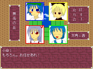 × [PR]上記の広告は3ヶ月以上新規記事投稿のないブログに表示されています。新しい記事を書く事で広告が消えます。 とまぁ、そんな感じですので 遊んでやってくださいな web拍手お返事 >4人目は小傘ちゃーん!(゚∀゚)前回はサブ(でも重要)、今回はパーティメンバー、 >となると次回辺りは星メンバーメインもありうるのか…! >って次回作の前に海逢玉だよ(ノ∀`)マッピング専用ツールなんてあるのか…! >今の時代はなんでもあるな…!とりあえず動画見すぎると >「プレイした気になって実際にやらない病」が発症するので我慢我慢…! そろそろ白蓮さんが妖怪を説得して仲間にしたり、 さとりさんがテレパシーを使って情報収集したりするゲームとか作ってみたい! その前に海逢玉を完成させたいですけれどw マッピングツールはvectorとかで探せば見つかるかも? >そういえば冥異伝だと紫やザナドゥ、果てにはケロちゃんとかまで >魔神種族でしたね。星キャラだと寅丸や白蓮も魔神なのでしょうか? >階級は第4階級か第5階級で・・・ 実際どうなんでしょ?あの世界観って 人間と魔神の間に圧倒的な差がありますし。 あるとしたら白蓮さんは第四階級、星さんは第五階級かも。 前者はムーンライトクラス、後者はホチキスクラスな感じで。 でもはちくまなら星さんを動物扱いしてくれるはず・・・・・・!(ぇ PR 動画第三弾を投下しました。 ちなみに現在の進行状況はこんな感じです。 小傘ちゃんが加入して、鈴蘭の丘に向かうところです。 この辺からマップが複雑化&道が広くなってどんどんめんどくさく(ry ところで、もうすぐα版を公開しようと思っています。 規模は第四話まで。マップを描く作業が必要な広さでもないので プレイ時間は一~二時間くらいになりそう。 大体一週間以内くらいを目標に調整中・・・・・・ 道の広さは一マスとまだまだ小手調べ級。 しかし第四話ではいきなりダークゾーンが来たりするので 3Dダンジョンの経験が無い人にとってはしんどい難易度になるかも。 完成版に向けて地力を付けていきましょう(ぇ web拍手お返事 >そうか!可愛いのはてんこちゃんで >綺麗なのがてんしおねえさんなんだな!(゚Д゚) >1キャラで2度美味しい! >マッピングか…俺のエクセルが火を噴くぜ…! >というわけで完成を楽しみにしてますね(*´∀`)つ[776ぅにぅにー] てんこちゃんは両方とも俺の嫁だがな!(ぉ マッピングはエクセルでやるのも良いけれど 専用のツールを探してみるのも良いかもしれません ぅにぅにーはありがたくいただきます(*´ω`)=3 >エストは初代を友達から借りてクリアした事があります。 >あれは良い作品です。ただ、ずっと4人で冒険出来ると思ってたのに・・・・・・ 後半の展開が衝撃的ですよね。 しかしだからこそラストバトルは熱かった・・・・・・ >とりあえず、ほい!ブリューナク分の3000ぅにぅにーじゃ! (*´ω`)わぁいぅにぅにーだー! (*´ω`)たくさん貰って食べきれないから冷蔵庫に入れておこう (*´ω`)つ[ぅにぅにー] [冷蔵庫] >エストのレビュ乙ですー。大いに参考にさせて頂きますた。 >残念ながら即買いには至らない感じでしたが、いずれ買います。 >世界樹の後くらいにwやりこみ要素あるなら、 >他を抱えないで専念するのが俺のジャスティス。 >でも世界樹もやり込むんだろうなぁ、あーやりたいゲーム多くて嬉しい悲鳴w by狼刀 世界樹3が出る頃には恐らく3000円切ってると思うので それまで待つという手も(ry 実際フルプライスで買うゲームじゃ(ry まぁ3000円ならちょうど(ry ホントにどうしてこうなtt(ry >バグを発見したんでお伝えします~ >プロローグのリリー編にて中間地点を過ぎた後死ぬと >地名表示が「春告精の家」になってます~。 バグ報告ありがとうございますー! 修正しておきましたので、よろしければパッチを当ててやってくださいな