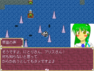 × [PR]上記の広告は3ヶ月以上新規記事投稿のないブログに表示されています。新しい記事を書く事で広告が消えます。 てんこちゃんの日っ!(ぇ 昨日はてんしちゃんの日で今日はてんこちゃんの日です(ぇぇぇ だからいっぱいちゅっちゅするよウフフ はぁ・・・・・・天子さんあいしてる(落ち着け それはさておき、久々に妖々夢。 最近は星蓮船ばかりプレイしていたけれど ふとプレイしたくなってこっちを。 なかなか身体は憶えてるようで、さっくりクリアしました。 東方妖々夢Lunatic夢符リプレイ プレイしたらプレイした分、成果として応えてくれる妖々夢は好きです。 星蓮船のプレイ時間は妖々夢の約十分の一程度なので 現在の十倍プレイしたら同じように応えてくれるかな? んでは次です。 合同RPG、ろんさんの章(何それ)は大体三話構成を予定。 現在は第二話を作ってます。今度は恐怖の針山地獄~♪ ・・・・・・どう見ても滑る床地獄です本当に(ry 私は二つの作業を同時にやることは無理っぽいので 合同RPGを集中して作ってる間は狼場刀は完全にストップしてます。 楽しみにしてくれてる人が居るかはわからないけどごめんなさいorz web拍手お返事 >合同RPG、6つのストーリーを堪能出来るなんて素晴らしい。 >ろんさんのストーリーでは星蓮船仕様の早苗さんが拝めるんでしょうかw >楽しみです 早苗さんかわいいよ 早苗さんかわいいよ! しかし今度こそ完成させたいところ。 今度こそ、マジで今度こそ・・・・・・ PR いま作ってる合同RPGの情報をちょこっとだけ公開します。 ストーリー: アリスとにとりと早苗さんの三人が 何か面白そうなことをやってるよ!(ぇ と、まぁこんな感じ。 この三人を中心に、六つのストーリーが展開されます。 それぞれのストーリーは私を含め六人の作者さんたちがそれぞれ担当してます。 ろん担当のストーリー: 地底に遊園地が出来たよ! 核融合の力をそんなことに使うなんて許せない! ぶっ潰せ!(ぇぇぇ とか言いつつちゃっかり楽しんでる早苗さんかわいいよ(ぉ web拍手お返事 >自分はほとんど絵を描いたことがないのでなんともいえないですが、 >新しいほうがなんとなくかわいく見える気がします。 >そしてなぜか恒例になっている東方プレイ状況、 >風ルナは残すところ誘導装備だけになりました。 >星EXは300回くらいプレイしてると思いますがいまだクリアできずです。 >ぬえはこいし以上に苦戦しています。 わぁい!かわいい言われた(*´ω`) 今回のExは鬼畜ですよね。未だに早苗B以外で安定しません。 主に道中のせいで・・・・・・! 風神録もがんばってくださいなー >ろんさん=龍さん説浮上。 >ぅにぅに→うにうに 、食べる→ドラゴン、 >→→→「サラマンダーよりずっと速い!」アッー な、なんだってー!? まぁ、ぅにぅにーはバハラグのうにうにとは関係ないですがw(ぉ そもそも自分はバハラグをプレイしたことがn(ry 星蓮船Ex、魔理沙Bでクリアしたよ! 長い道のりだった・・・・・・ろんさんは死んだ(ぇ 魔理沙Bリプレイ ちなみに、全員でクリアするとこんなことになります。 Nで見たことある人は多いかも。 では、次の話題。 時遡本の時に描いたこぁーがあんまりにもあんまりだったので ちょっと描き直してみました。 あんまり変わってないように見えますが それは特に気にしない(ぉ 中ボスRPG以外にもうひとつRPGを平行して作ってるので こっちの制作スピードはかなり落ちるかも。 web拍手お返事 >神主の弾幕スキルが紅魔郷に比べて格段に上がっている→ >Lunaticがなんとかクリアできるレベル→我々にとって鬼畜レベル な、なんだってー!? しかし普通にありえそうです。恐るべし。 >白蓮さん僕も好きですよ~。 >星EXは早苗Bで1回だけ最終スペルにいっただけ。 >ノーマルまではそれほど難しくない気がするけど >EXは間違いなく今までで最高難易度ですね。 >他作品は地まで全機体ハードクリアして、 >今は風ルナをレザマリ(なるべくバグ使用禁止、これが3装備目)で攻略中です。 白蓮お姉さんに甘えたいウフフ Exの何が鬼畜かって道中ですよね。 最序盤の自機依存ランダム弾に始まり 高密度の弾幕、妖精の撃破を邪魔する大UFO、 小傘ちゃんのからかさ驚きフラッシュのどうしようもなさやら・・・・・・ フラッシュは未だに二ボム使います。取得できる人すごい 風レザマリは一度クリアしたけど レーザーバグが気になってそれっきりです。 >亀ですが星蓮批判にこめんとです。 >なんか確かに難易度の方向性がおかしいですよね。 >軌道予測が難しいヘニョレーザーとか早すぎる回転レーザーとか。 >死んでも「え、なに?」って感じで萎え萎えです。 >過去ダントツで最高につまらない5面でした。 >道中もなんか画面見づらいですし批判しだすともうきりがないです。 難易度調整の最終的な着陸位置が大幅にズレた感じですよね。 ただでさえ文花帖以降のレーザーはksgなのに それを斜めから連射してくるとかもうね!(ぉ せめて判定関連が永夜抄以前のままなら不満は出なかった