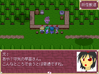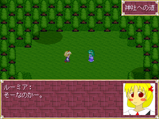 東方星蓮船の体験版、皆さん手に入れました? ろんさんはネタバレスレで堪能してきました(駄 というわけで、キャラについてのネタバレも自分は平気です。 こっちに書くことはないけどな!(ぉ あとは我らの ストーリー見る限りはアリスや既存キャラが出る可能性もありそうですが・・・・・・ というわけで天闘技、第二部は地底編です。 博麗神社に居た紫と萃香に案内され、地底へ潜っていく早苗さん。 地底の入口で釣瓶落としの妖怪キスメに出会いますが、 声を掛ける前にキスメは逃げてしまいましたとさ。 引っ込み思案なキスメかわいい いいワカメスキなキスメカワいい(何 web拍手お返事 >ずいぶんちまっこくて可愛い衣玖さんですねw もうちょっと上手く描ければ良かったなぁ 出来るだけ頭身低目を意識していたりします。 謝辞:いつも補足ありがとうございます ふぁいんどたすくさん PR と、言うわけで星蓮船の早苗さん出演、 改めて祝いの言葉を申し上げます。なんちゃって。 ZUN氏のブログを見る限り、もしかして既存キャラも登場する? なんていう期待も持ってしまっていたり。 アリスと 妖々夢を見る限り、冥界(≒天界)の入口は空の上にあるようだから もしかしたら寄り道も(ry 流石に無いか(´・ω・`) 現在、天闘技はようやく八話のお話を書き終えて 九話に入ろうといったところです。 今のところ、1話/8日くらいのペース?八話が長すぎるだけかも。 web拍手お返事 >あ、あれ・・てんこちゃんが主人公じゃなかったのか!? メイン主人公:てんこちゃん サブ主人公:早苗さん こんな感じです。てんこちゃんがシナリオ中、 とある理由で動けなくなるのでその間は早苗さんが頑張ります。 この二人って結構似た者同士だと思うんですよね。 ぶつかったら意気投合するか全面対決になるかのどちらかだと思います。(そうか? >アリスが倒せないと嘆いていた者です。 >ようやくアリス撃破!思い切って防御力と精神力を上げたら >目に見えてダメージが減りました。ダメージ源は毒w 猫野山は防御&精神ゲーです(ぉ あんまり上げても数値の変動少なくてイマイチ盛り上がりに掛けますが。 二周目のプレイは是非、防御と精神を捨てて攻撃に振ってください。 勝利敗北問わず、決着が10ターンほど早くなりますw >東方Project第12弾の情報が来ましたよー楽しみすぎる、 >しかしいい地Ex出したいものだ・・・永Exクリアできても地ノーマル無理だw しっかり見てきました。情報thxです! やっぱり地はクリア出来ない人居るのかー・・・ そのうちリプでも撮って攻略ページでも(ry >遅ればせながら猫山完成オメ&乙かれー >でもまずはビットキャッシュからか、 >その前に他の東方系yaさばかなきゃだし・・・いっぱいいっぱいだオレorz >ろんさんゲーももう一周するつもりだぜ オメ乙ありですー! ビットキャッシュはお近くのコンビニで。 最近は東方RPGが増えてきてこちらとしても嬉しい限り。 そしてもう一周やってくるのかー。がんばですw >時遡本プレイ中、咲夜&レミリアを倒したところまで。 >紅魔館らしきところでの仕掛けを見て >「滑る床?ドラクエじゃん!!」と思いましたww。 >東方新作楽しみです。 割と愛されるトラップですよね。ドラクエでの初出は4でしたっけ? >早苗さんのボムエフェクトは星型に違いない! 魔理沙のアイデンティティ取らないでやってw まじで!? どうやらマジっぽいです。 東方project第12弾は、東方星蓮船 ~ Undefined Fantastic Object. サブタイの頭文字がどう見ても未確認飛行物体です本当に(ry しかも早苗さんも主人公です。いやっはー!!(落ち着け ・ステータスが漢字表記に。 ・左下にUFOみたいな物体が・・・・・・何だあれw ・最大得点が右側に配置。左下だと見づらかったからねぇ。 ・何か雛っぽいのが居る? ・後姿でも早苗さんかわいいよ早苗さん ・スペルカード復活キタ――――(゚∀゚)――――!! ・今回も星を取ってエクステンドっぽい? ・右側に何か数字の入った球体が・・・・・・って画面上にUFO居るし! ・・・・・・・また要求スペック上がってそうだなぁ(汗 とりあえず早苗さんが主人公で嬉しい。 風キャラで一番好きな子だし(*´ω`) web拍手で情報くれた方に感謝ですー web拍手お返事はとりあえず二日後に 制作ペースが微妙に落ちてる気がするろんさんです。 霊夢から注意するようにと言われていたのに ルーミアと遭遇してしまった早苗さん。 頼りの天子は既に天界に帰ってしまった・・・・・・ がんばれ、早苗さん! たったひとりでも妖怪退治は出来る!(と思う(ぉ web拍手お返事 >ネタバレ注意! 猫野山クリアしましたよ~面白かったです。 >ちょっと気になったのは全体マップの時音楽が変わらないのと、 >破壊の爪入手後は攻撃系スペカがいらなくなる事ですね。 >次回作も楽しみにしてます! プレイありがとうございますー! 命中が半分しかない破壊の爪を使いこなすとはまいったw 全体マップで音楽が変わらないのは特にロマサガを意識したわけでもありません(ぇ しかしイメージとして刷り込ま