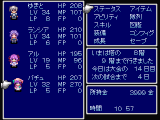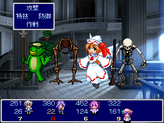 × [PR]上記の広告は3ヶ月以上新規記事投稿のないブログに表示されています。新しい記事を書く事で広告が消えます。 リリーホワイト! 気合弾幕に定評のあるリリーホワイトじゃないか!! というわけで、今日もToKです。冥異伝と平行して遊んでいます。 ちなみに、冥異伝は魔神ホチキスを倒して ザルマン将軍を倒しにサイバーダンジョンへ向かっています。 で、ToKも現在20時間くらい。塔は14階まで登りましたよ。 レベルはもうすぐ60です。明らかに上げすぎ。 持久力Lv10に経験値増加Lv5があれば怖いもの無しです。 RPGは、第三大陸の南の港町に到着。 海賊と闘技場で戦うことになりました。 SSはありません(´ω`)=3 web拍手お返事 >ToKをやるならAirRPGやらないと話が分からない所ありますよ ですよねーorz魔神に関すること等、 既によくわからない会話が繰り広げられてます。 KanonRPGは途中までやりましたが・・・・・・ まぁ、それらはきっと追々AirRPGでわかるかと。 >Tokか・・・。もしかして、冥異伝→Tokって逆流でプレイしてますか? その通りです(ぉ と言っても、KanonRPGは途中までやってます。 ロマカノは魔神シナリオじゃないそうなので 後回しにする予定です(´・ω・`) >あなたが冥異伝を楽しそうに紹介するから…っ!勢いあまって買っちゃったじゃないか!!!! 早まるな\(^o^)/いや、面白いですけど! ただ、かなり人を選ぶ内容だったりします。主にシナリオ面で。 RPGとしても割と難易度が高めなので、 強いボスに負けずに頑張ってくださいなー! PR これは、ToKというサークルはちみつくまさんのRPGです。 ちなみにまだ序盤のようです。 前半のラスト近くで詰むとかあり得るらしいので レベル上げですよ(´・ω・`) 自分のRPGも少しずつ進んでます。 ホントに少しずつです(´ω`) web拍手お返事 >えと、イラストを送りたいときはどうすればいいのでしょうか? >当分先になりそうですが。 募集してないことトップに書いた方がいいんだろうかorz あのときは勢いで言っただけなのですよ(´・ω・`) >最近の私の好きな言葉ベスト3! >1ST シャンハーイ! >2ND ホラーイ! >3RD フタエノキワミ、アッー!! シャンハーイ! ホラーイ! フタエノ・・・・・・最後ちょっと待てw じゃなくてバレンタインデーですよ(´・ω・`) 去年はニーの絵を描いていましたが まぁまぁ今年は何もなく。 しかももうすぐToK届くし というわけで、久しぶりに花映塚やってみたり。 しばらく三部作ばかりだったので、たまの花映塚は非常に新鮮ですよ。 第三大陸である砂漠の国シャプルも終局に近づいています。 まだ大陸が二つ残ってますが! あとは雪の国ファリルと巨人の国カポネだけです。 やって無くても楽しめますが、やってても全容を知ることは無理です。 だって大事な説明部分を全部すっ飛ばしてますから(*´ω`)=3 そんなわけで、web拍手お返事です 幽修剣と形使役クリアしました。やっぱりメッチャいいですね。 プレイありがとうですー! その二つは割と最近に出したものなので、 比較的安心してお出しできるゲームだったりしますb 初期に出したアレとかコレとか手直ししたい部分多すぎるorz こんな感じだよ! 引継ぎはしてないよ! でもやり方はわかってるから 前回よりレベル低くても楽勝だよ! それでもアリスはキツかったよ!やっぱりアリスは強いよ! 外は雪降ってるよ!めっちゃ寒いよ! 暖房つけたよ!めっちゃ暑いよ! と、それはさておき。 制作は牛歩ながらも進んでいます。 そろそろ動画のひとつでも出したいところですが、 動画ってコンパクの規約的にはどうなんだろう・・・・・・ 今年も出すつもりです。一般向けに改良しつつ。 いや、別に青年向けじゃないですよ? いまは前作オリジナルの洞窟脱出!みたいな感じです。 あれくらいgdgdな会話をしていますが、 それじゃちょっと厳しいと思いますし。 とか言ってる間に雪強くなってきた(´・ω・`) web拍手お返事 >冥異伝はかつて共に戦った仲間が場合によっては >敵となるっての…これってメ○テン要素? >それはさておき、上海人形はいいものだぁ~!!w メ○テンはFCのDDSしかやってません(ぉ しかもミノさえ倒してません(ぇ それはさておき、上海はいいですよね(*´ω`) >東方紅魔館と東方冬源郷プレイしました。 >キャラクターへの愛情がひしひしと感じられるとてもいい話でした! >RPGの絵がないとの事ですが、宜しければ描かせていただけないでしょうか? 東方紅美鈴と冬源郷のプレイありがとうございますー! 自分の二次創作RPGだとかなり初期のものなので粗が多いですが・・・・・・ RPGの絵に関しては、今回は自分で頑張ってみますよ。 日記の上で紛らわしいことを言ってごめんなさいorz >冥異伝はニコニコでよく拝見しますが色んな意味で >素敵な作品です(笑)。脇の下が○い巫女ってww 確かに良い作品ですよねー♪ シナリオはパロネタ知らないと厳しいですが・・・・・・orz |