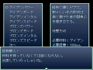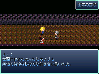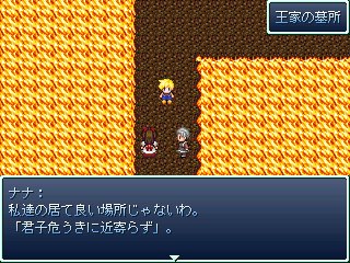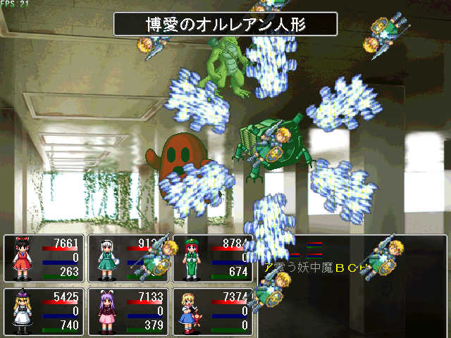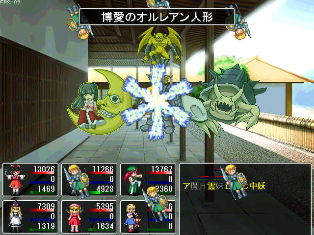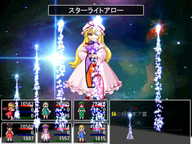 × [PR]上記の広告は3ヶ月以上新規記事投稿のないブログに表示されています。新しい記事を書く事で広告が消えます。 レベルは171ですが、いまだ撃破ならず。 紅魔ルートのラスボスは鬼畜ですorz まぁ完全に防御捨てて特攻した自分が悪いんですが(( ちなみに、前回の日記からレベルが40くらい上がってたり。 製作中RPGは、トップに置いてある 制作実況にてどうぞ。 砂漠の城を抜けて、もっと深遠まで進んでいます。 web拍手お返事 >あれ?輝夜さんじゃまいか、そんな凶悪そうな月に乗って何やってんの やっぱり姫にしか見えないですよねー ちなみに、彼女はボスとして対峙することにもなります あまり強くなかったけれど(´・ω・`) >素敵な東方RPGにはホント感謝です。 >因みに私のRPGスタイルは「Don't Escape主義」です。 >逃げてばかりでは欲しいもの(レアアイテムとか)は >手に入りません。ザコが強いなら楽に勝てるように >なるまで稼ぐのみ!と、戦闘バカな私でした(笑 どういたしましてー! 逃げない方が経験値も溜まるしレアも手に入るんですけどねぇ どうしても戦闘が面倒なときが(ry でもそのRPG始めたばかりのときは何故か稼ぎに回ってしまうのは FC時代のドラクエのクセ(*´ω`)=3 >突然ですがズバリ問います! >東方RPGを作ろうと思った「キッカケ」はありますか? キッカケはWAI氏の紅魔郷RPGですねー 東方 ツクールで検索してみたらドンピシャですよ! 面白いなぁとか言ってる間に自分もやりたくなっちゃって。 で、こうなった(ぇぇぇ PR 永遠亭に乗り込んで、てゐと鈴仙に藍&橙を撃破。 次は永琳のところへ突撃ですよ! ここまで来ると、味方もどんどん強くなっていきます。 それは敵も同じことですが・・・・・・ 対策してないと平気でニ万ほどダメージ食らいます こっち一万ちょっとしかHP無いよ! まぁ対策すればニ~三千ほどに減らせます。 ところで、黄昏酒場のweb配布が開始しましたねー。 コミケ時点から噂として聞いて内容が気になっていたのですよ やってみたらムズいのなんの・・・・・・二面で落とされてしまったorz web拍手お返事 >まいったぁ!日記で知りましたが東方RPGをまたも >考えていらしたとは!実は内心、形使役で完結? >と不安になってたトコでした。期待するぞ!まいったぁ! 冥異伝やってるから進行度は絶望的だぁ! システムとお話のネタが尽きない限り続けると思いますよー 多分、近いうちに紹介ページも作ると思います。 おまけ 今宵は十六夜(*´ω`)=3 冥異伝クリアするまでツクールしない!!(ぇぇぇ もちろん冗談ですが( 現在のプレイ時間は32時間。レベルは110ですよ。 三魔神の同時攻撃を凌ぎ、苦節の末に撃破した霊夢たち。 紅魔館でまったりしていたら突如永遠亭が攻めてきた! 敵の中には、苦楽を共に戦ってきた鈴仙の姿も・・・・・・ 永遠亭に攻め上る霊夢が見たものとは!?続く!!(ぉ で、現在の制作状況です。 見事に進んでいません。 進行スピードはなんと形使役の半分程度。 冥異伝が面白すぎるから(ry web拍手お返事 >優永夜クリアしました!レベルは39で日数34です! >オリキャラごっそーさん!これからも期待してます! ありがとうございますー! オリキャラ出さざるを得なかったときは どうしようかと思いましたが、反発が少なくてよかった(;´ω`) 面白すぎる冥異伝の所為であって、 作者が怠け者だからでは決してないっ!!(ぉ 魔神なるものが現れて、金属性の魔神を退治したところです。 ちなみにプレイ時間は25時間で、レベルは92です。 とりあえずレギュラーはスクショの通り。 メディを使おうか迷ってますが、 代わりに外せるキャラが居ない(( 霊夢:仕様上外せない 妖夢:主力だから居なくなると困る。早いし強い 中国(=美鈴):貴重な打撃要員。魔神系魔物にも安定したダメージ 魔理沙:補助の要。素早く詠唱も早いので居なくなると困る うどんげ(=鈴仙):貴重な遠距離物理要員。人間に強い アリス:外すつもりなどサラサラ無い。強いし メディの入る隙が無い(´・ω・`) 進んでることは進んでますよ 砂漠の大陸で王家の墓参りをしに行きます。 モチベがイマイチなので、非常にのんびりツクっています。 完成は四月を目処に。公開は六月の予定(ぇぇぇ で、完成してから公開までの間に東方RPGを軽めに一本。 紅魔館の五人が、図書館をもぐっていくそんなお話。 上手くいけば同時公開かも web拍手お返事 >冥異伝は自分も持ってます!音楽が素晴らしいので >ボスアレンジアルバム2(だっけ?)もゲット! >他にもぱちゅコンも面白いです。戦国幻想郷は考え中ですが >サントラはゲットする予定です。まそっぷ! お前はトマトか! それはともかく、冥異伝いいですよねー(*´ω`) ぱちゅコン!はスペックがヤバそうなので様子見ですが( 公式の動画見た感じでは可愛くていいですね(*´д`)♪ どちらかというと黄昏フロンティアは緋想天の体験版に期待していたり。 戦国は、作者さんがバグ潰しが忙しそうなので今回は見送りです。 冥異伝はじめました 上海アリス幻樂団とKeyの二次創作を中心にしている